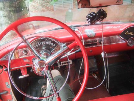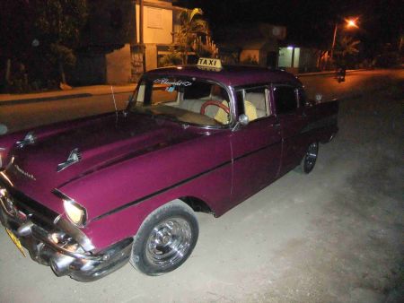 Manche kubanischen Oldtimerfans, wie der Taxifahrer Roberto, der mir gleich nach meiner Ankunft am Flughafen in Holguin zugefallen ist, möchten aber auch wieder ein "Schmuckstück" aus einem Wrack machen. An seinem 56-er Ford ist zu erkennen, welch talentierte Karosseriespengler aus der Ersatzteil-Not entstehen. Der russische Vergaser an seinem Original Motor funktioniert aber auch, bis er das Geld gespart haben wird um sich für ca.150 Dollar (ein Vermögen für Ihn) einen Originalen Ford Vergaser kaufen zu können. Falls den Jemand aus USA mitbringen kann. Denn einfach bestellen kann er ihn nicht.