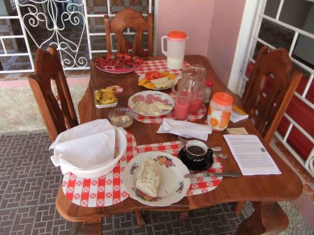 Sollte jemand, so wie ich, in Kuba keinen pauschal-Touristen Urlaub machen wollen, sondern direkten Kontakt zu Land und Leuten bevorzugen, dem kann ich meinen Vermieter Roberto wärmstens weiter empfehlen. Sehen Sie sich seine "Villa Ely",die am Rande der Stadt Holguin im Süden Kubas liegt, auf den Bildern an. Im Innenhof befindet sich das Nebengebäude in dem die beiden Appartments liegen. Sie werden den Luxus einer Klimaanlage haben, die im Privathaus nicht zu finden ist. Vor dem Gebrauch von Warmwasser werden Sie allerdings erst einen Schalter betätigen müssen, der sich im ersten Stock befindet. Auch hier herrscht kubanischer Flair. Der Früstückstisch wird mit kubanischen Speisen gedeckt, die Roberto am Morgen für Sie einkaufen wird. Mit frischem Obst wie z.B. Bananen aus dem "Garten" seiner Mutter und frisch gepressten Fruchtsäften. Genießen Sie die familiäre Atmosphäre und plaudern Sie beim Abendessen mit Ihnen. Auf spanisch, wenn sie es beherrschen. Auf englisch mit Roberto, der von seiner Tochter, die englisch in der Schule hat, immer besser erlernt. Und dann natürtlich mit Händen und Füßen, wenn es nicht mehr anders geht. Ich beherrsche kein Spanisch, aber ich konnte immer das vermitteln, was ich sagen wollte.