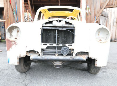 abgebrochene Restauration. Das Fahrzeug wurde teilweise sandgestrahlt